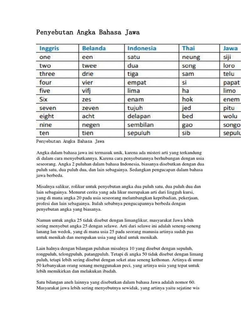 Keunikan Angka Dalam Bahasa Jawa Pengetahuan Adalah Ilmu